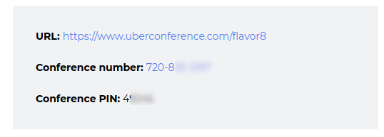 I use uberconference to do the interviews. We’ll coordinate a time that works for you, and I’ll send you conference information. It will look like this (I’ve blurred out specifics):
